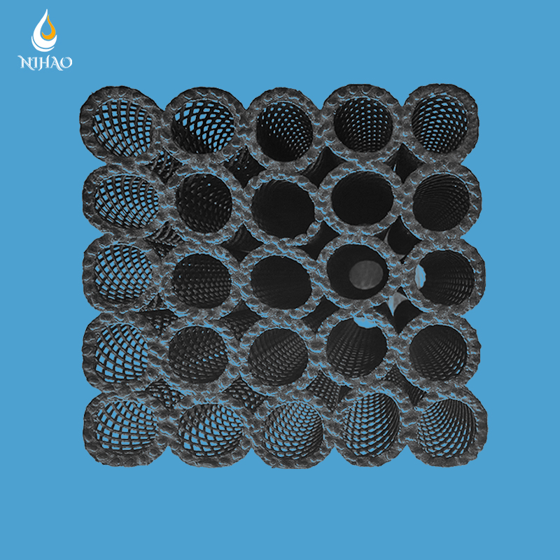 . These HDPE Bio-Block-Medien features many mesh tube on surface.Die Oberfläche der Bio Blok-Filtermedien dient als Träger für Spezialfilter mikrobielle Bakterienstämme, die organische Stoffe behandeln und abbauen können Stoffe in verschiedenen Abwässern. Die Kapazität eines Biofilters hängt von der Menge ab Anzahl der Bakterien, die der Filter aufnehmen kann. Je größer die spezifische Oberfläche Je größer die Fläche des Bio Blok Filtermediums, desto größer ist die Anzahl der Bakterien, die eindringen können wachsen.