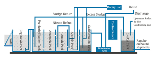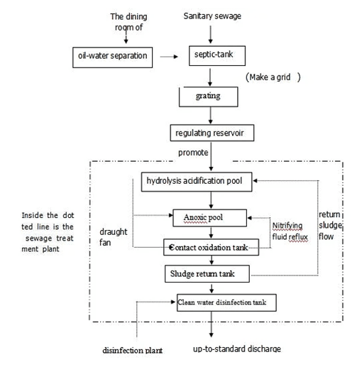 •Technologischer Prozess-2Die biochemische Behandlungseinheit verwendet eine fortschrittliche biologische Kontaktoxidationsmethode, hauptsächlich von1. Hydrolytische Ansäuerung,2. Hypoxie-Biochemie,3. Kontaktoxidation,4. Rückfluss der Nitrifikationsflüssigkeit,5. Schlammrückfluss,6. Sekundärfällung, Belüftung, Desinfektion und andere Prozesse.